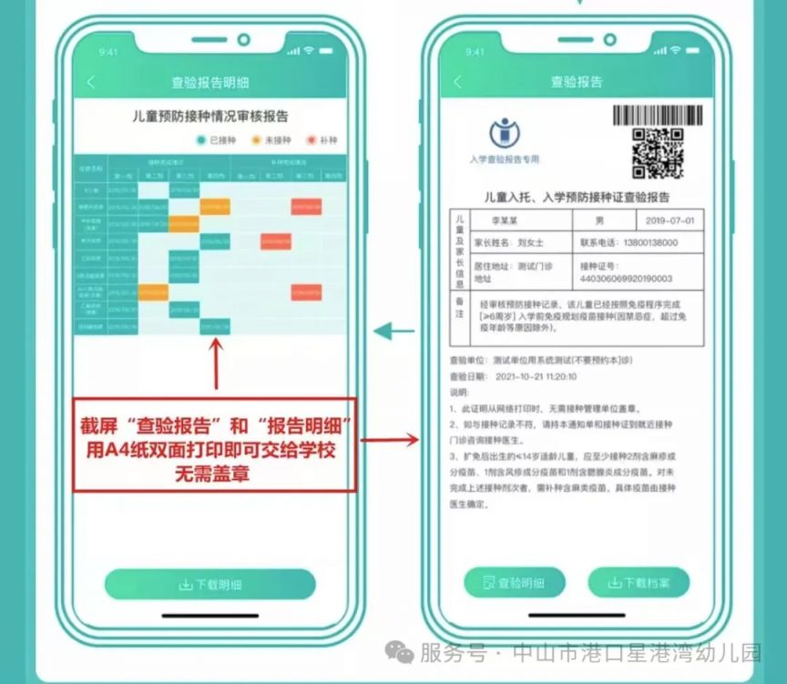2.预防接种查验证明:(携带幼儿的预防接种本到防保所打印或登录手机“粤苗”APP打印)