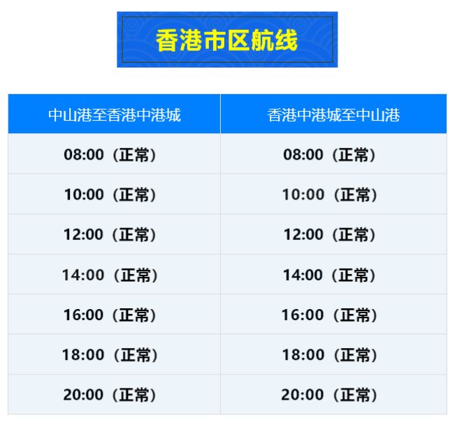 3. "常见航线": - 香港市区(如尖沙咀、中环) - 香港国际机场 - 澳门 - 深圳蛇口