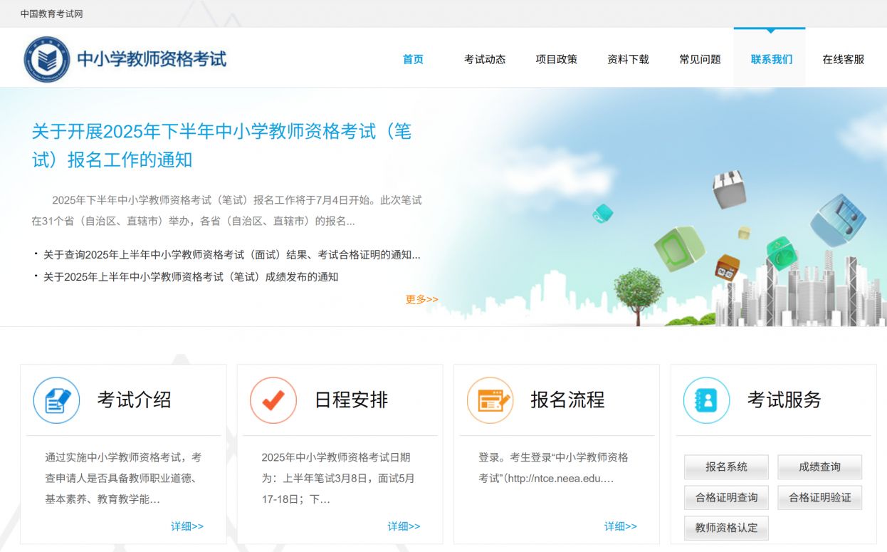 2. "进入官网":点击进入后,您会看到全国中小学教师资格考试的主页面。